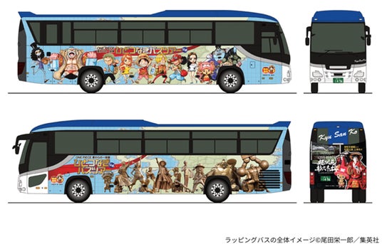 9月までに県内、九州内はもとより全国各地から多数の方々にご参加いただき好評を博しているこの「ONE PIECE 麦わらの一味像ひとつなぎバスツアー」を10月より、節目となる10年目に向けてラッピングバスにて運行いたします。