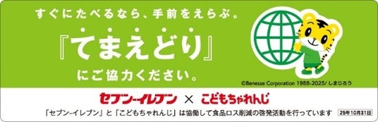 このたび、ベネッセの「こどもちゃれんじ」とセブン‐イレブン・ジャパンは連携し、10月より期間限定で、「しまじろう」デザインの「エコだ値」シールと「てまえどり」POPをセブン‐イレブン店舗にて展開します。