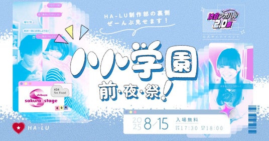 数分で心が夢中になるショートドラマレーベル、株式会社HA-LU(本社:東京都港区、代表取締役:岡春翔、以下「HA-LU」)は、2025年8月16日(土)・17日(日)の2日間、MIYASHITA PARK(渋谷区立宮下公園)屋上を舞台に青春カルチャーフェス『渋谷アオハル2.0祭』を開催しました。
