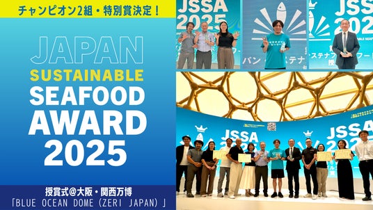 第6回ジャパン・サステナブルシーフード・アワード(JSSA2025)の授賞式が、本日大阪・関西万博「BLUE OCEAN DOME(ZERI JAPAN)」ドームCにて開催され、7組のファイナリストの中から2組のチャンピオンと1組の特別賞が発表されました。本授賞式は、同会場で9月29日から10月5日まで開催されている「選んで守るサカナの未来 Week」のプログラムの一つとして実施されました。