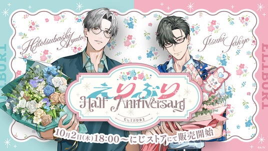 にじさんじに所属する一橋綾人、五木左京の2名によるユニット「えりぶり」のハーフアニバーサリーを記念したグッズが登場!