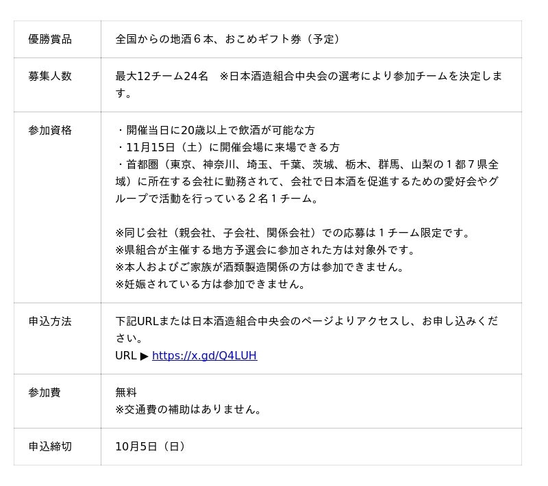 ■ 「社会人日本酒愛好会対抗の部」募集要項