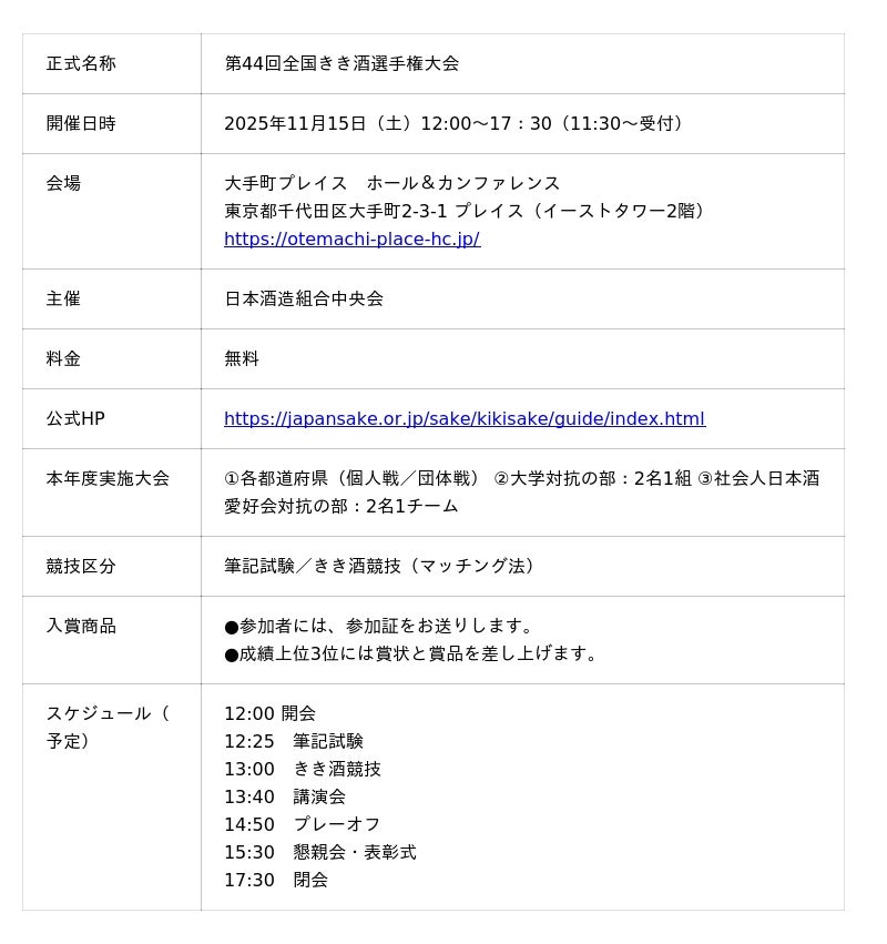 ■「第44回全国きき酒選手権大会」開催概要