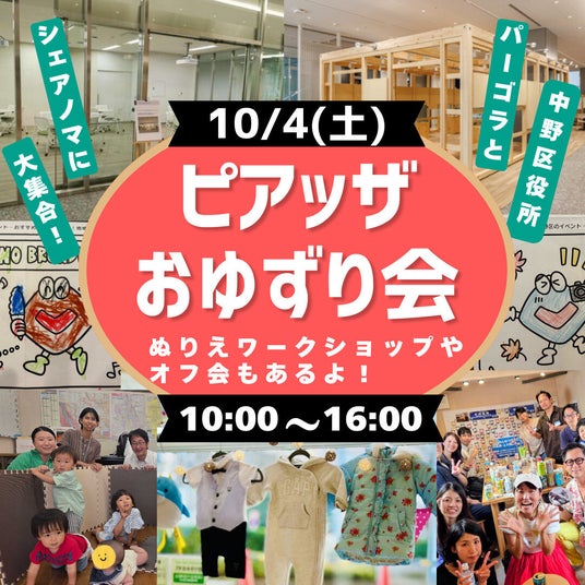 また、10月4日(土)10時より中野区役所1階にて開催する「ピアッザおゆずり会 in中野」でも本ぬりえを無料で配布します。当日は、完成したぬりえ作品を会場内で展示する他、小さくなった子ども服や絵本などを地域の中で譲り合う「おゆずり会」、来場した方同士で気軽に交流するランチ会「寄りみちピアッザ」などを実施予定です。