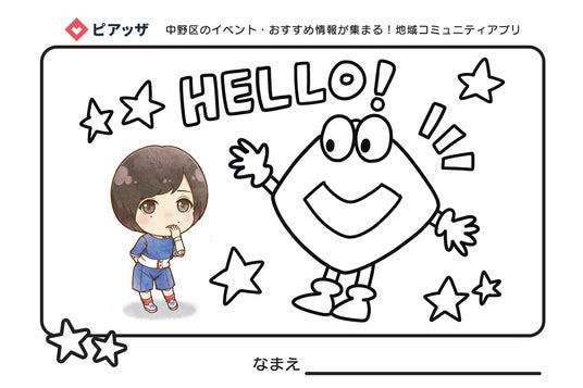 また、ピアッザくんの第1弾コラボレーション企画として、東京都中野区シティプロモーションキャラクター「中野大好きナカノさん」とコラボした「ピアッザオリジナルぬりえ」を制作。10月4日(土)~9日(木)の6日間、区内の子どもたちによるぬりえ作品を中野区役所1階 に展示します。