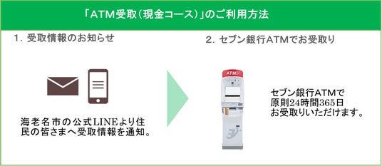 株式会社セブン銀行グループの株式会社セブン・ペイメントサービス(本社:東京都千代田区、代表取締役社長:柏熊 俊克)は、神奈川県海老名市(市長:内野 優、以下 海老名市)へ「ATM受取(現金コース)」の提供を2025年10月1日(水)より開始しました。