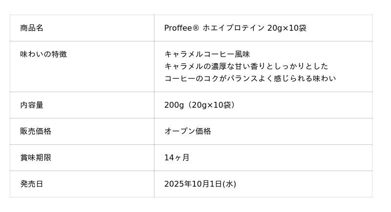 (専門性×コーヒー)」から生まれた造語です。第一弾としてProffee(R)ホエイプロテインを2025年10月より発売します。