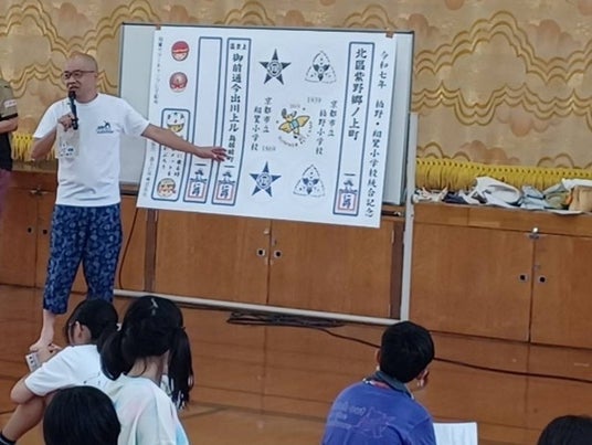 今回の舞台となったのは、100年以上前から変わらない地名が多く残る京都市上京区の翔鸞学区・北区の柏野学区です。この地域では、2025年4月に柏野小学校が翔鸞小学校へ統合され、主催の上京少年補導委員会翔鸞支部が子どもたちに改めて自分たちの住む地域の歴史を知り、愛着を育んでほしいとの想いから、サマーキャンプ内に学びの時間を設け、自分たちの小学校の歴史や住所を通じて京都独特の住所の成り立ちを紹介することになりました。