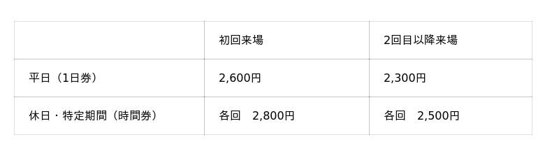 大人・子ども 同一料金(0歳は無料) ※税込価格