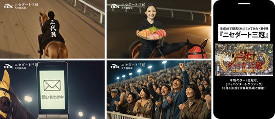 東京シティ競馬(TCK)は、「羽田盃(JpnI)」・「東京ダービー(JpnI)」・「帝王賞(JpnI)」での好評を受け、下半期でも2大レースである「ジャパンダートクラシック(JpnI)」・「東京大賞典(GI)」を盛り上げる特別企画として、現在、世の中の大きな関心事となっている「生成AI」を活用した競馬CMシリーズを展開。第4弾として、~生成AIで競馬CMつくってみた・第4弾~ 『ニセダート三冠』 の公開が決定しましたのでお知らせします。
