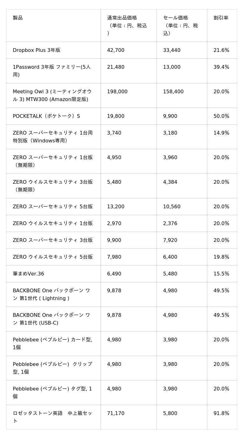 プライム感謝祭:10月7日(火)0時~10月10日(金)23時59分