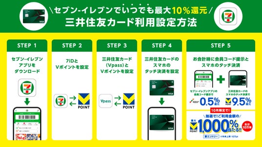 【第1弾】Vポイントをセブン-イレブンでお得に"貯める"10月!「三井住友カード」のスマホのタッチ決済で最大1,000%還元!