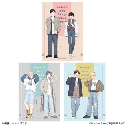 ■B賞:アクリルパネル (全3種)ファッション誌をイメージした、各ペアの格好いいショットに注目! 蒼川なな先生の描き下ろしイラストを大きなサイズで楽しめます。