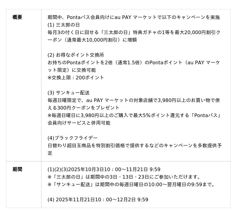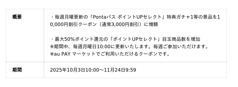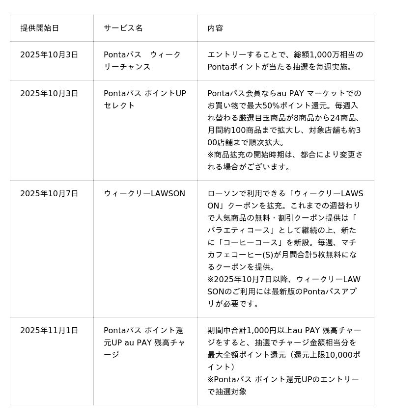 2025年10月から、「Pontaパス」会員向けクーポンやポイント還元などのサービスを拡充します。