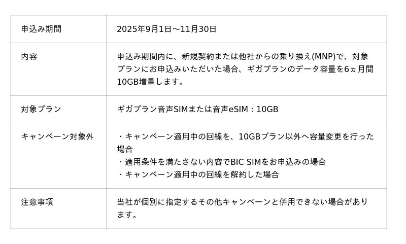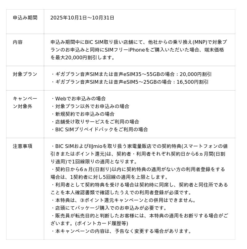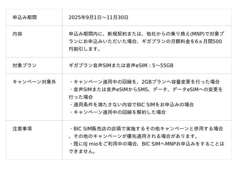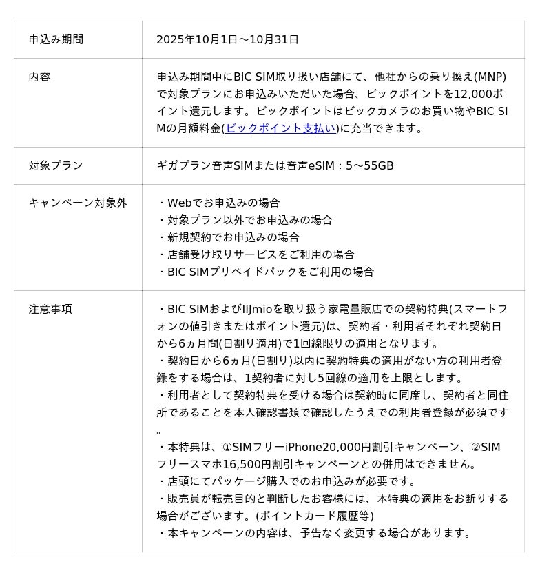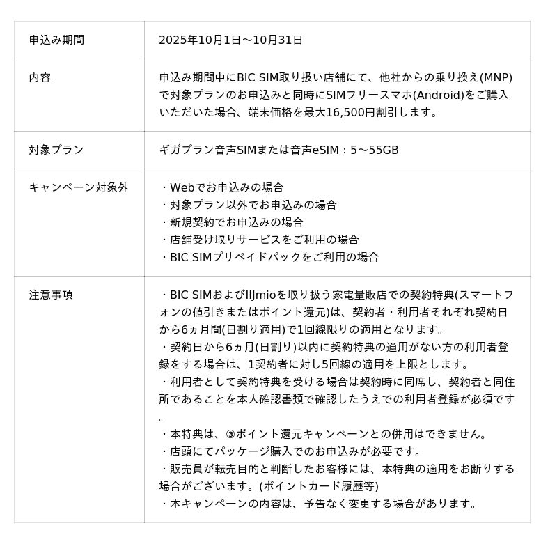 [店頭申込み限定]BIC SIMキャンペーンの詳細は以下からご確認いただけます。
