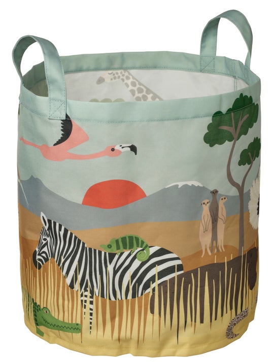 魅力的なサバンナが描かれた、たっぷり入る実用的で装飾的な収納バッグ。親も子どもも、おもちゃやタオルからひざ掛けや洗濯物まで、何でも管理が簡単になります。