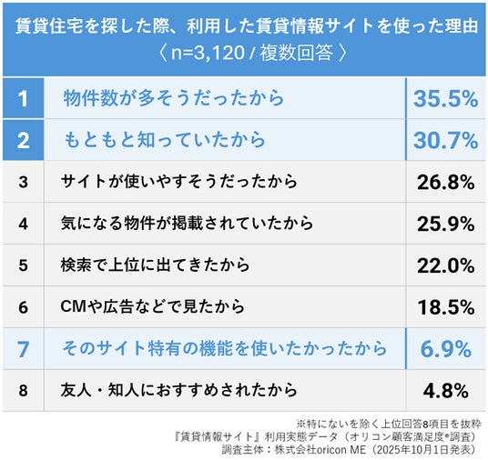 「賃貸住宅を探した際、利用した賃貸情報サイトを使った理由」(2025年 オリコン顧客満足度(R)調査)
