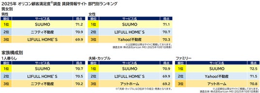 『賃貸情報サイト』部門別ランキング(2025年 オリコン顧客満足度(R)調査)