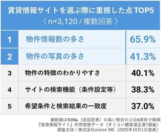 「賃貸情報サイトを選ぶ際に重視した点 TOP10」(2025年 オリコン顧客満足度(R)調査)