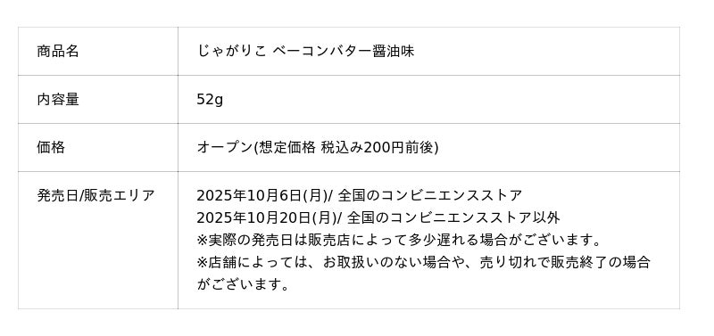 カルビー株式会社(本社:東京都千代田区、代表取締役社長兼CEO:江原 信)は、独自の製法で“はじめカリッ♪とあとからサクサク♪”の心地よい食感が楽しめる「じゃがりこ」ブランドより、ファンと一緒に作り上げた30周年だけの特別な味わいが楽しめる『じゃがりこ ベーコンバター醤油味』を2025年10月6日(月)から全国のコンビニエンスストア先行で期間限定発売します(2026年6月中旬終売予定)。