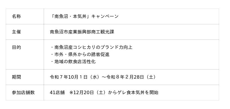 本気丼(マジドン)とは、「産地にしかできないこと」をテーマに、南魚沼産コシヒカリを市内外の人にお腹いっぱい味わってもらおうと願いを込めて始まった「食によるまちおこし事業」です。11年目となる今年もご飯と具材を各店それぞれの尺度で大盛りにした丼が大集合。南魚沼市内41店舗46丼が出揃いました!