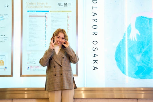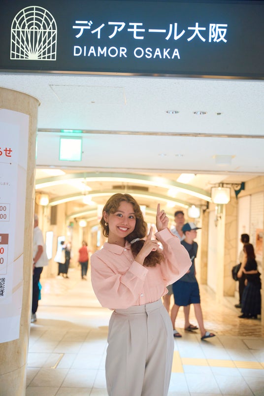 ディアモール大阪が同級生だと知り、嬉しく思ったと同時に、30周年という節目でお祝いすることができ、幸せに思います。友達と遊ぶために梅田方面に来ると、いつも“シュッとしている”都会やな!と思っていました。天井が高くてお日様の光が入ってくる「ファッショナブルストリート」がとても気持ちよかったです。撮影日は、まだ暑かったですが、地下街ならではの涼しい空間と、お日様が感じられる空間が好きです。間もなく完成する私のポスターを見かけたら、それぞれのコピーにも注目してみてください!ディアモール大阪で過ごす皆さんの時間が、よりハッピーなものになったら嬉しいです。
