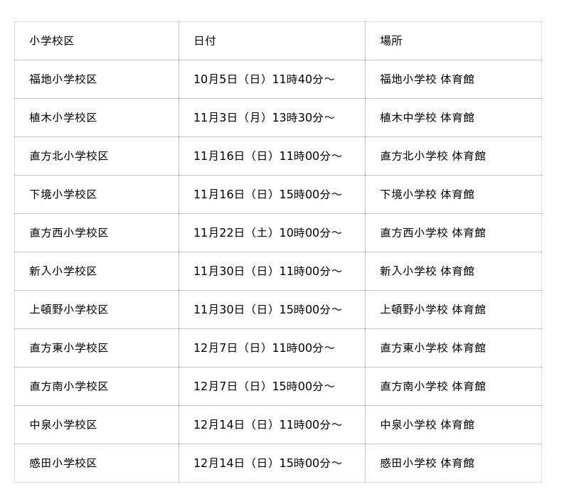 対 象 者: 対象の小学校区内に住んでいる人・働いている人