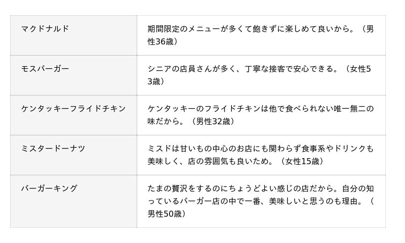 ☆そのファストフード店が最も好きな理由(全5,148件)