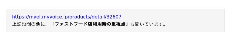 本調査のファストフードは、ハンバーガーやドーナツなどの洋風ファストフードを対象としています。調査結果をお知らせいたします。
