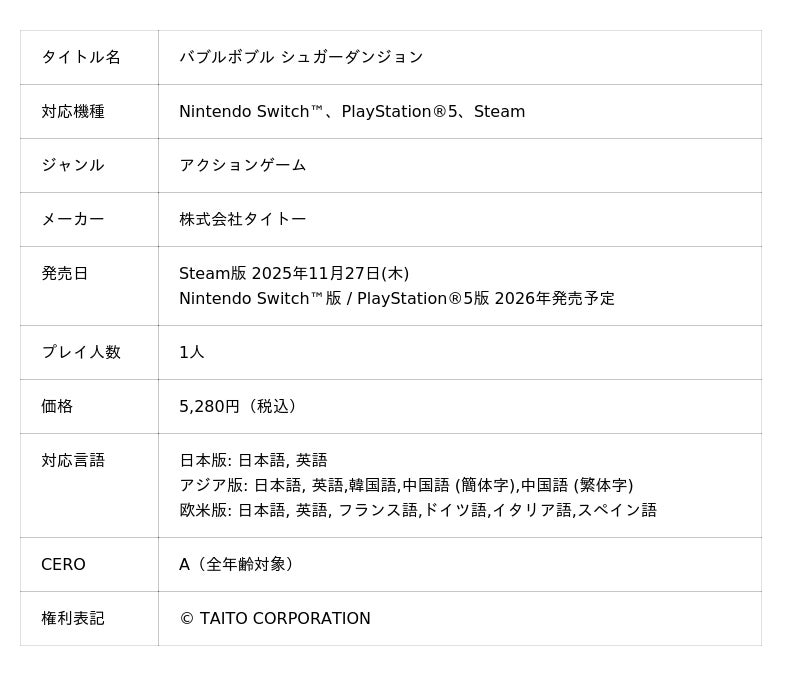 『バブルボブル シュガーダンジョン』公式サイト:https://www.taito.co.jp/BBSD