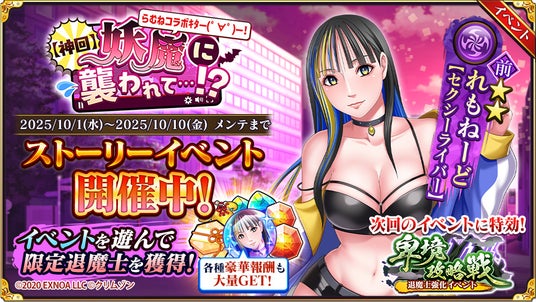 合同会社EXNOA(本社:東京都港区、CEO:東條 寛、URL:https://games.dmm.com/)が運営するDMM GAMESにおいて、女の子が絶対負けないRPG『クリムゾン妖魔大戦』が本日10月1日(水)より、「らむね」さんとのコラボイベントを開始したことをお知らせいたします。
