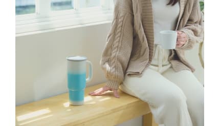そのほか、取っ手を備えたタンブラー型のデザインを採用することによって、持ち運びやすいほかスムーズに給水できる。また、取っ手によって満水時でも安定して持ち運べる。