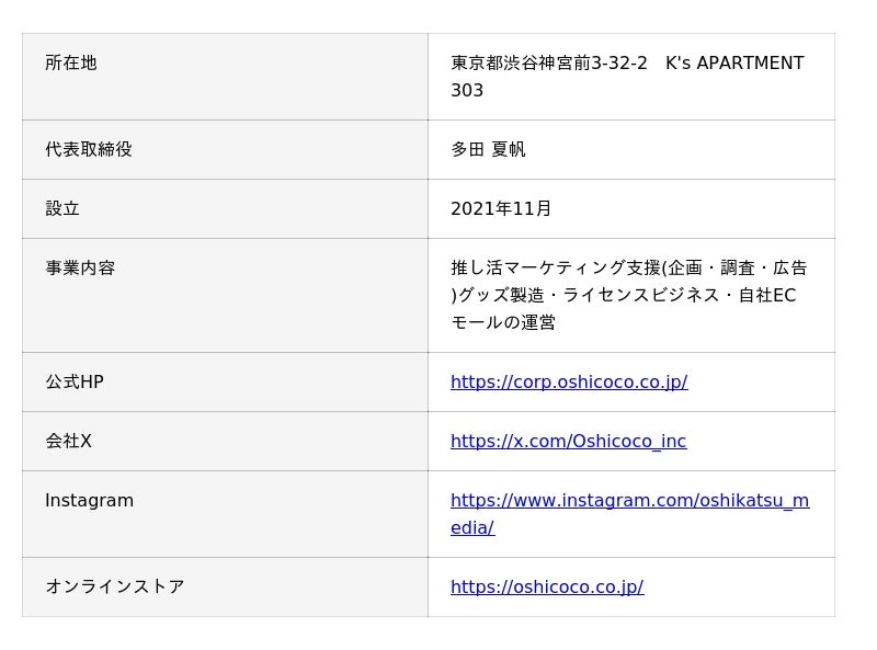 弊社は"推し活”女子をターゲットに、オタク領域でオンラインストア・メディア運営を実施しております。また、企業様向けにオタク企画プロデュースやコンサルティングを行っております。
