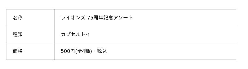 プロ野球・埼玉西武ライオンズが「ライオンズ」の名を冠してから75周年を記念するアニバーサリーカプセルトイが登場。