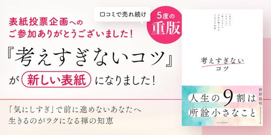 株式会社東洋経済新報社(本社:東京都中央区、代表取締役社長:山田徹也)より刊行の書籍『考えすぎないコツ』は、5度目の重版を迎えました。これを記念し、実施した表紙デザインの投票企画にて、柔らかなグラデーションのデザインが選ばれ、このたび新しい装いで生まれ変わります。