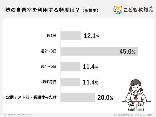 目前に迫る大学受験。「どうすれば勉強に集中できるのか?」という課題に対し、その鍵が「場所」選びにあることが明らかになりました。日本最大級の教育Webメディア「こども教材プラス」(運営:株式会社SUNCORE)が、塾の自習室を利用した経験のある高校生の保護者140名を対象にアンケート調査を実施しました。