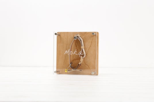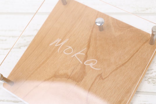 名前入りアクリルと無垢材の温もりで、大切なペットとの記憶を永遠に