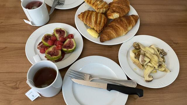昨夜ご飯を食べなかったので、お腹が空いていた。TORUくんがクロワッサンを買ってきてくれて、今日はガッツリと朝からセップです。バターで炒めるよりも薄切りにしてオリーブオイルで炒めた方がおいしいと聞いたのでやってみました。なるほど、おいしかった。クロワッサンもショッソン・オ・ポムもおいしかった。