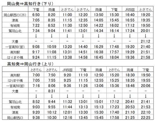 ※運行情報などの詳細は、高速バス岡山~高知線HP