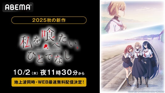 新しい未来のテレビ「ABEMA」は、2025年新作秋アニメ『私を喰べたい、ひとでなし』を、2025年10月2日(木)から毎週木曜日夜11時30分より、地上波同時・WEB最速無料配信いたします。