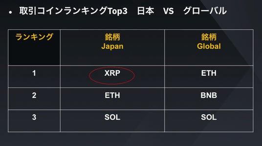 3. 人気銘柄:国内首位は「XRP」、世界とは異なる投資傾向