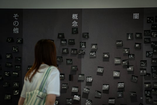 「黒と聞いて思いつくものは?」という疑問に対し、ポストイットに自由に書き込み、パネルに貼り付ける参加型の展示を用意。
