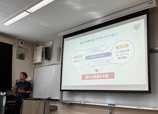 本講義を通じて、キングスのビジネススタッフの講話やキングスの試合会場を研究フィールドとした調査協力など、プロスポーツビジネスにおける特異な環境の提供や、知見の共有を行います。それにより、学生への体験や普段とは異なるフィールドでの学術研究への寄与に繋げることを目的としています。