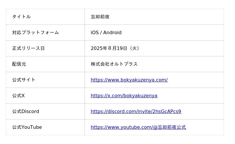 以上のほか、本作の概要につきましては、オルトプラスが8月19日に配信した以下のプレスリリースにてご確認ください。