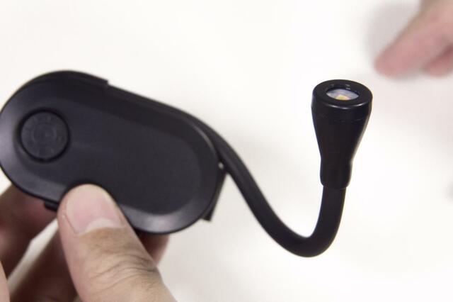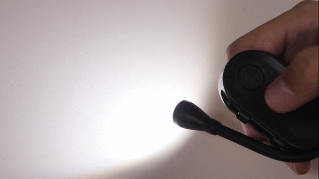 使う時には、本体側面にハマっているアームを動かして好きな角度に調整することができるので、照らしたいところをピンポイントで狙えるようになっています。