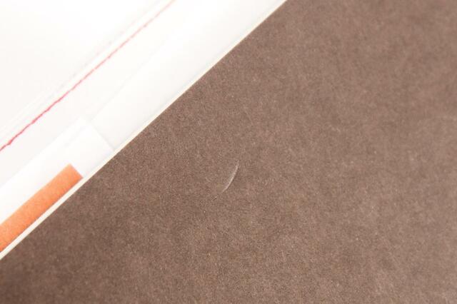 本を開いた時、ここに紙が押しつけられるような形になると写真のように凹みができてしまう。