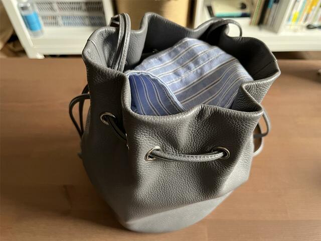 巾着バッグ感が強調したいときや、服のコーディネートとのバランスを考えて、こっちのパターンで使うことも多いです。