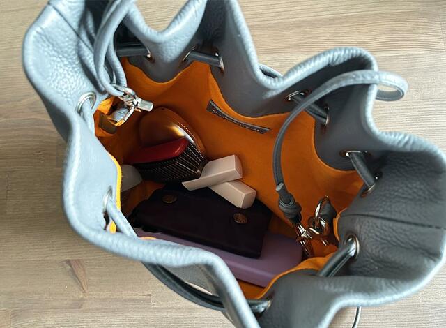 今回わたしが選んだのはオレンジの裏地ですが、この他にもイエロー、コーラルピンク、シルバーグレーが展開されています。