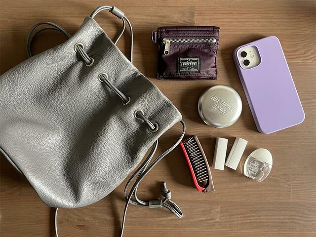 最近のわたしの持ちものです。化粧直し用のコスメから、お財布、スマホなど、細々としたものもバッチリ入ります。