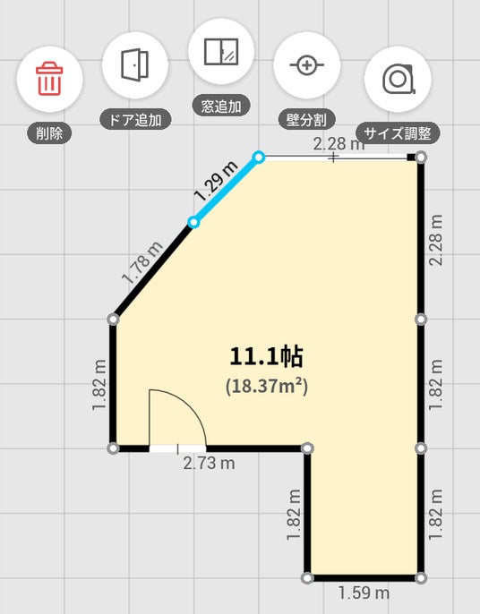 また、ポインタを追加・操作することにより、斜めの壁も作成可能。ユーザーの住まいに合わせて、自由自在にお部屋を作ることができるようになりました。